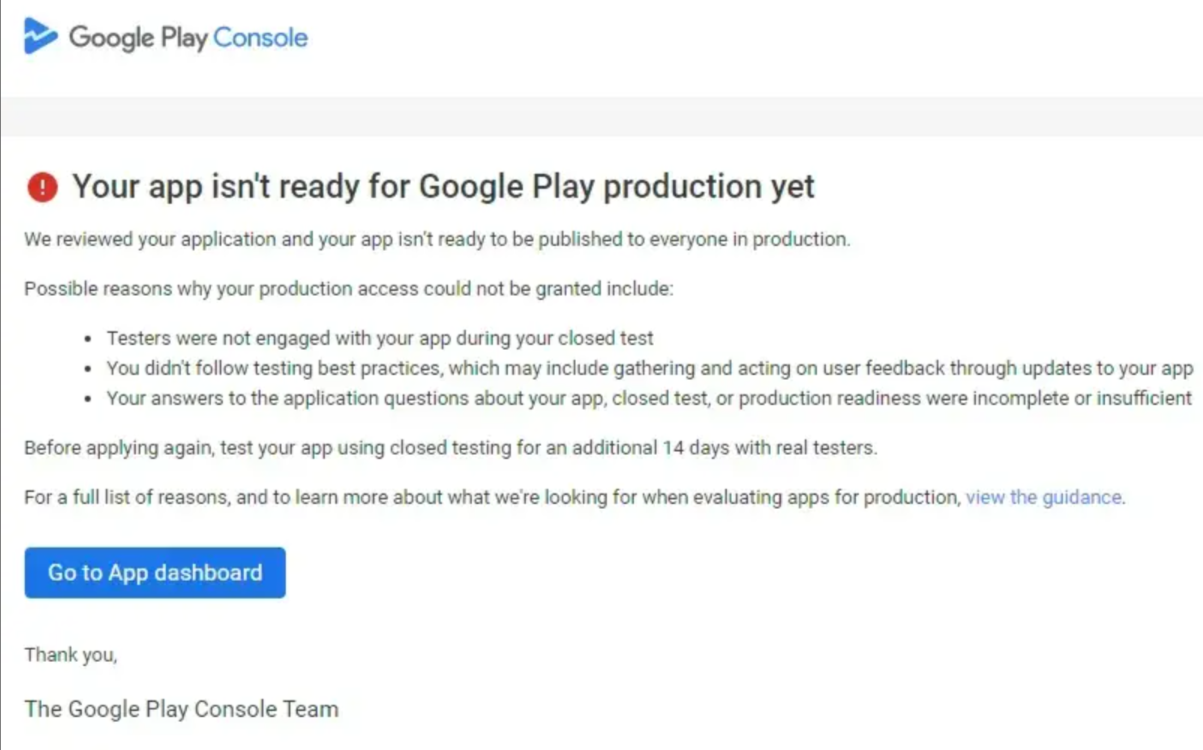 - ✔ 连续 14 天 持续参与封闭测试(Closed Testing)