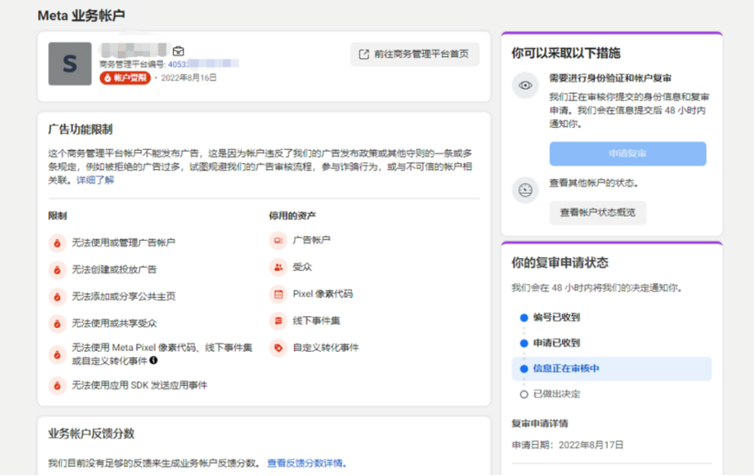 - 若主页被永久限制,不建议继续绑定核心广告账户