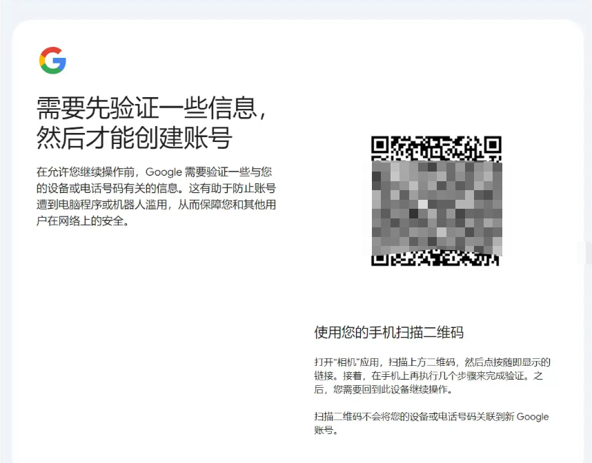 为了提升账号安全性与真实性,Google逐步加强了账号注册与登录的验证流程。2025–2026年,Google在部分地区和注册环境中引入了强制性二维码验证,主要是为了防止机器人脚本滥用账号、批量注册账号行为。具体表现为: