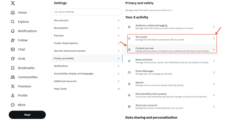 ②Settings–Privacy and safety