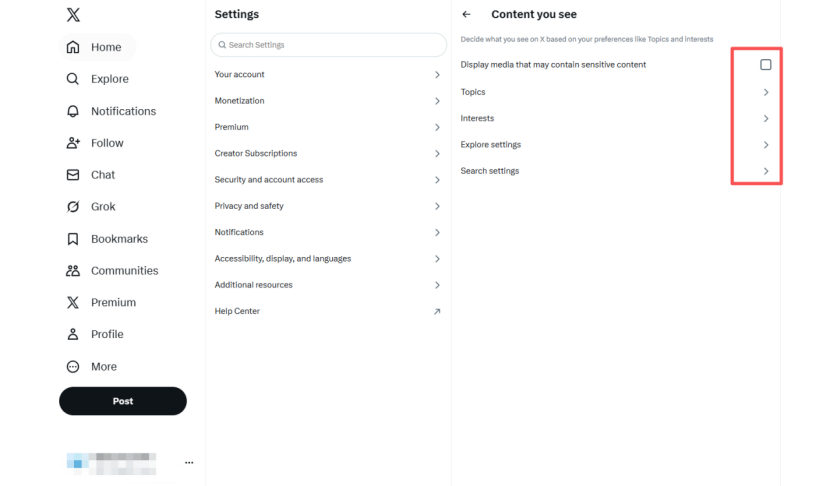 取消勾选「Display media that may contain sensitive content」