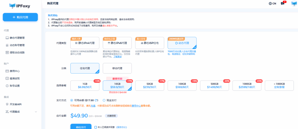 如果你想稳定亚马逊数据采集,IPFoxy是一个成熟且适合长期使用的住宅代理服务商。